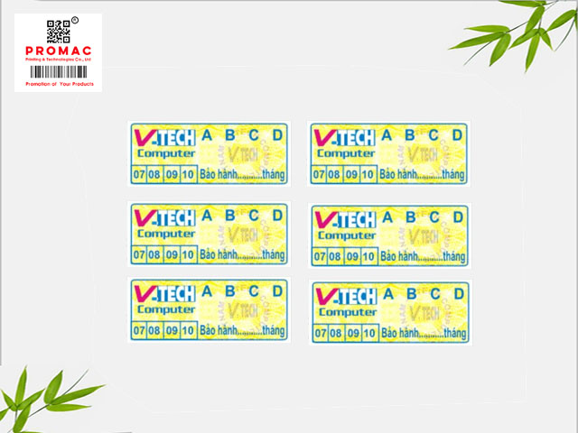 * Tem bảo hành ghi thông tin: gồm 2 loại: Tem bảo hành ghi ngày tháng và tem bảo hành ghi sẵn các thông số.